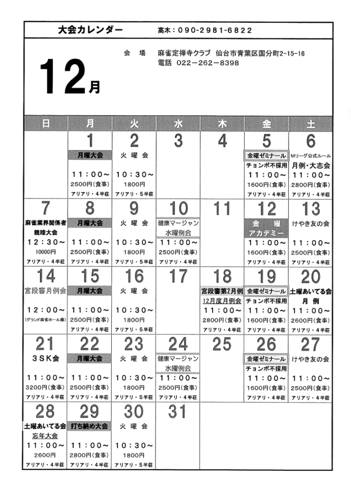 麻雀 定禅寺クラブのホームページへようこそ!仙台市内にある楽しく安心して遊べる雀荘の紹介です。